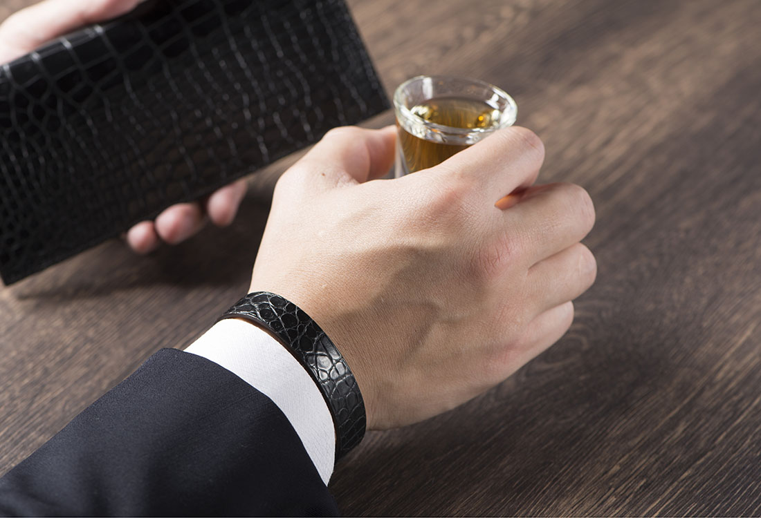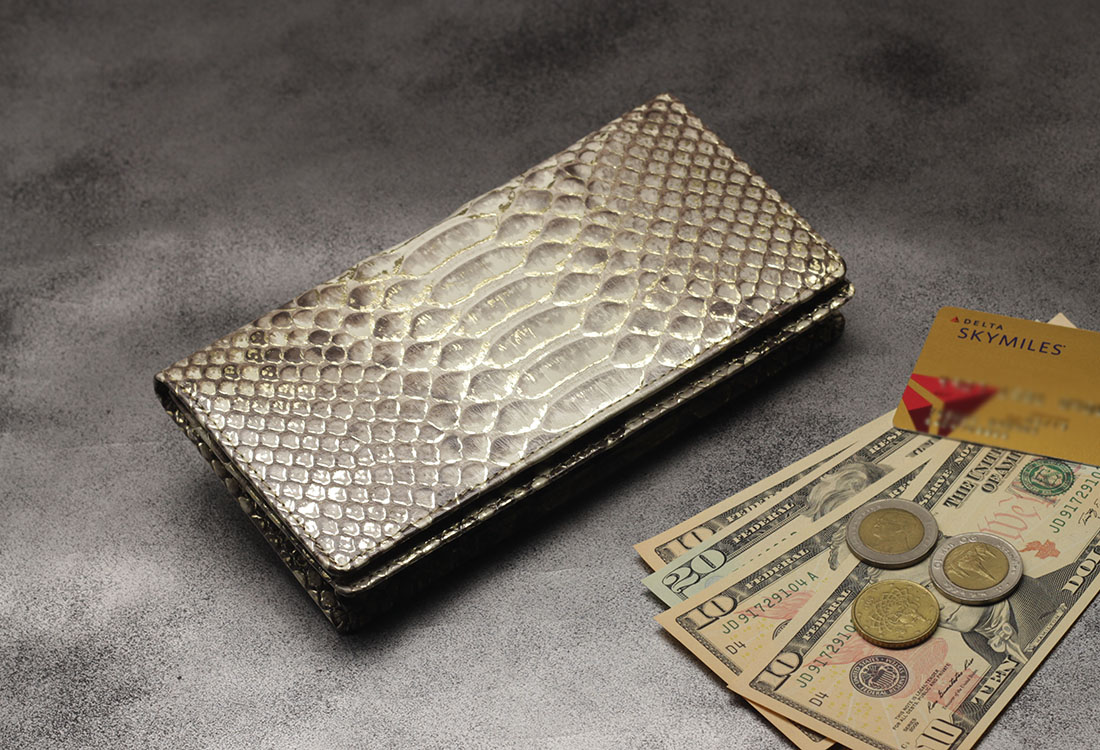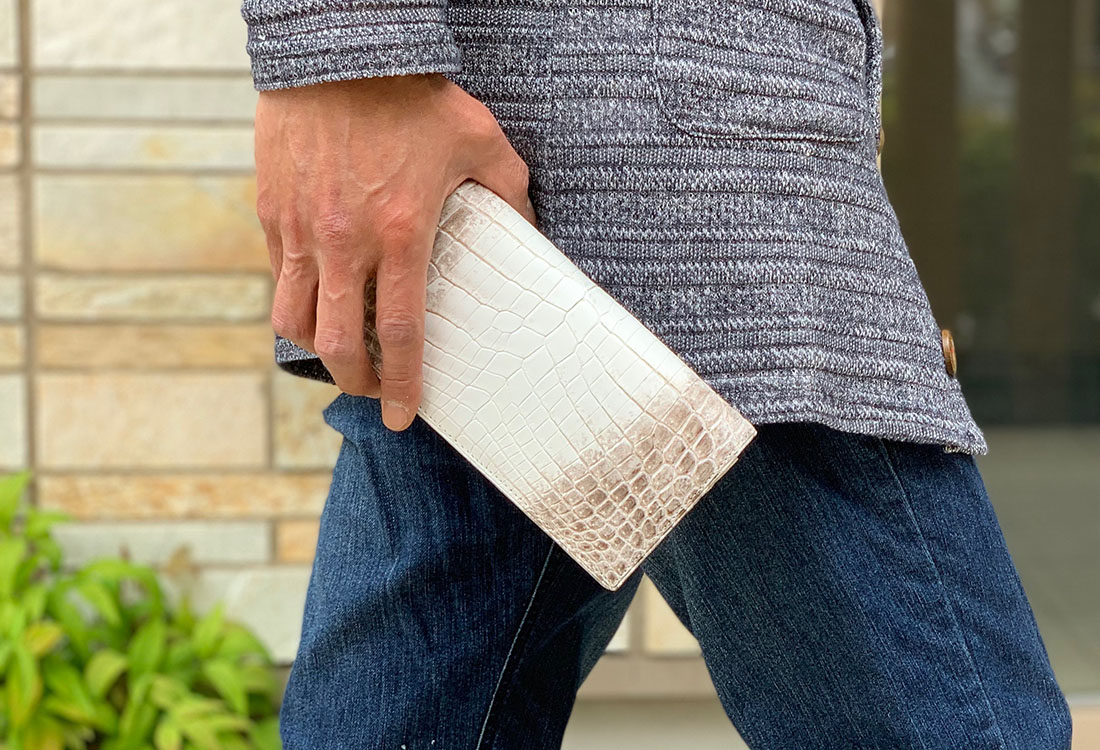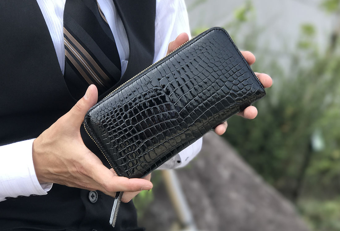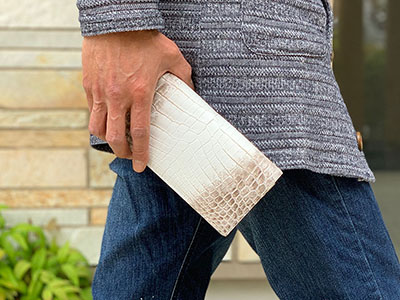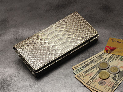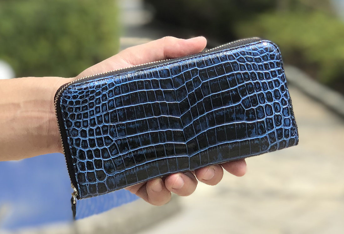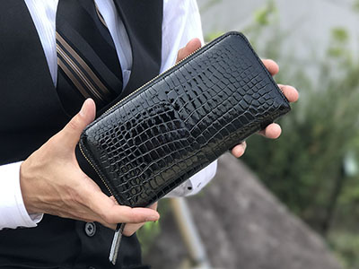 爬虫類皮革の最大の魅力はなんといっても牛革等の皮革にはない独特の存在感が味わえるところ。